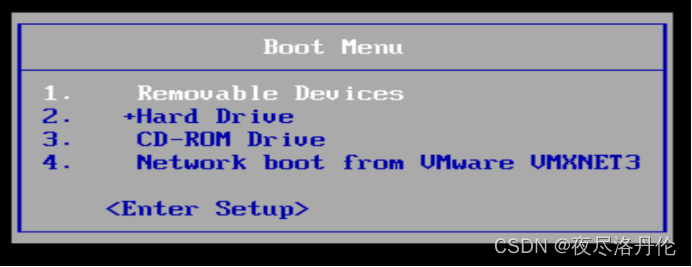 也可以在从硬盘启动客户机后迅速按esc则可以进入bios界面的启动选项,不过要拼手速,不推荐:
