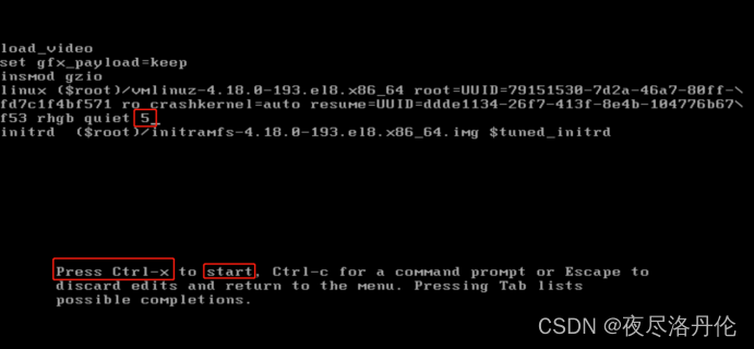在这里输入5(系统启动级别为5:有图形网络模式),然后按ctrl+x键即可正常开机: