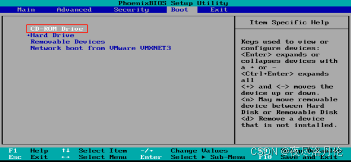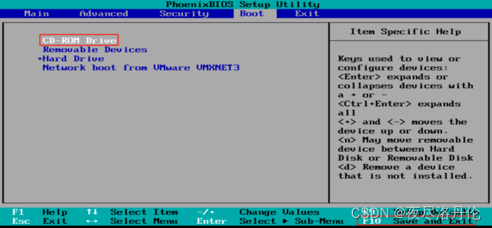 若想从其中一个设备启动,只需要移动到它然后按shift和加号把它的位置移动到第一行就可以了。这里选择从光驱启动,然后按f10可以保存更改的设置: