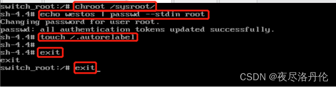 第二条命令表示修改密码为westos,修改密码后才能登录(因为忘了密码)