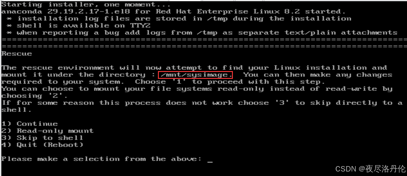 这里提示如果想进入硬盘里的真实系统则需要执行chroot /mnt/sysimage这个命令