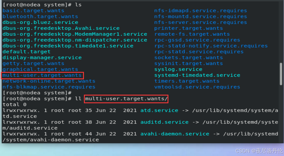 在这个system目录中,在这个multi-user.target.wants目录中,若存在某个服务的软链接则这个服务才会开机自启动: