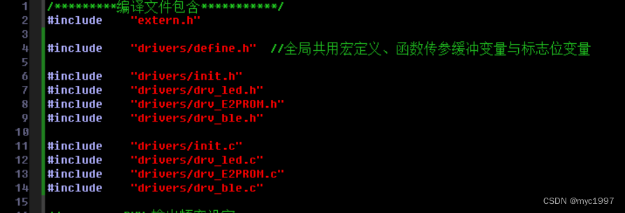 1、在工程初始头文件extern.c中定义全局都需使用的宏与变量。如用于函数传参的全局变量,又如:#define true 1 的值定义,引脚定义之类的各个功能都可能会使用到的宏定义。当然,也可以单独定义一个头文件写这些内容。