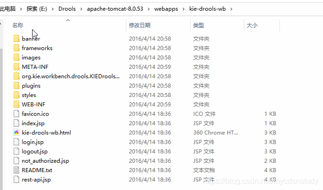 下载 kie-drools-wb-distribution-wars-6.4.0.Final-tomcat7.war之后解压到 Tomcat 的 webapps/kie-drools-wb下面,目录结构如下:
