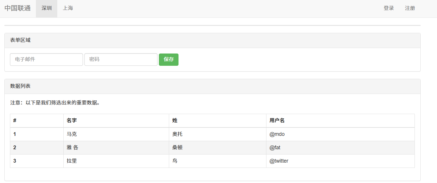 表单区域,引入数据列表