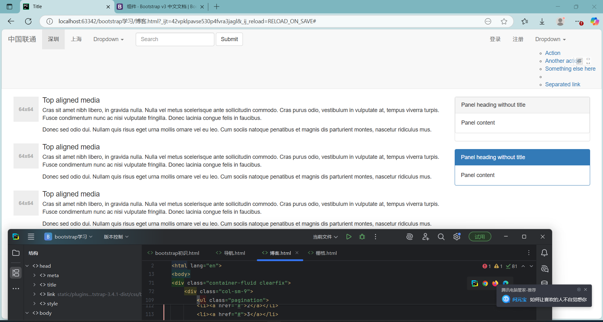 导航栏和分栏制作