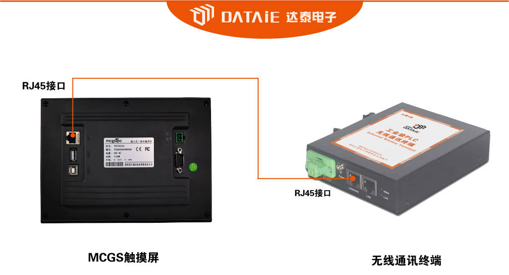 用一根通讯线,一端接入DTD418M的RJ45接口,另一端接入MCGS触摸屏的RJ45接口。