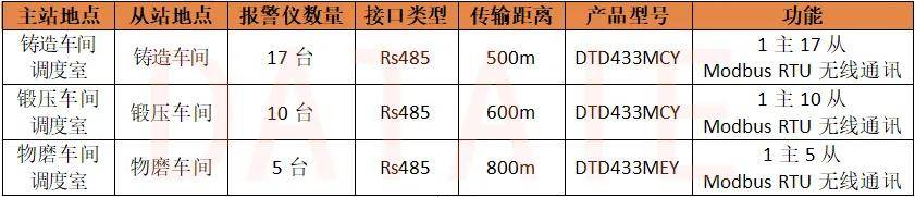 分别在总控室触摸屏与车间调度室触摸屏端安装一台达泰DTD434MEY工业级无线通信装置,实现总控室触摸屏与各车间调度室触摸屏之间1主3从的无线MODBUS数据传输交互功能。