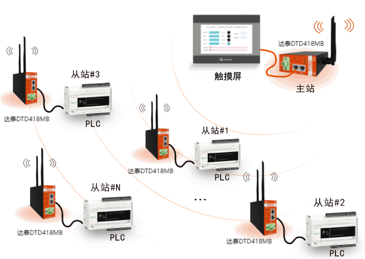 触摸屏与PLC之间的无线通讯,实现人机界面触摸屏与1台或多台PLC之间的无线通讯。