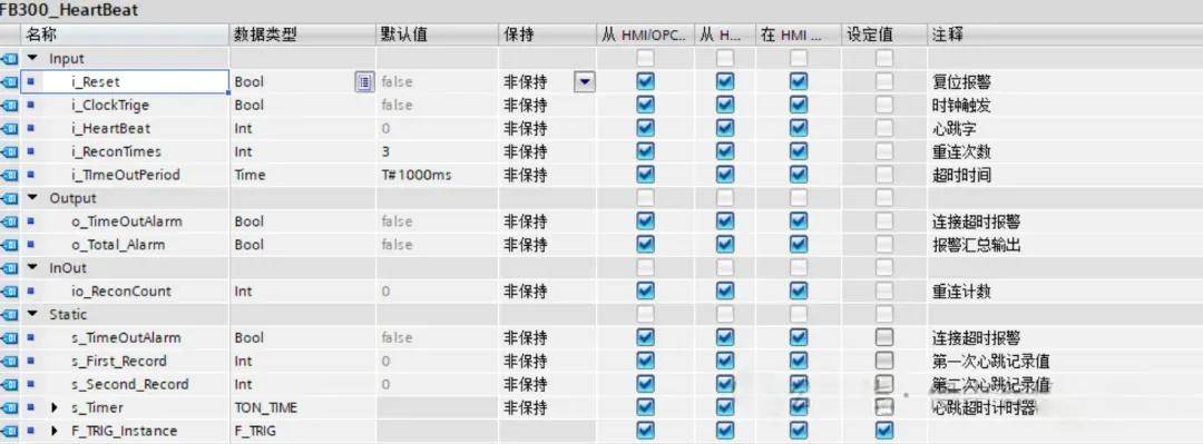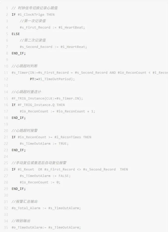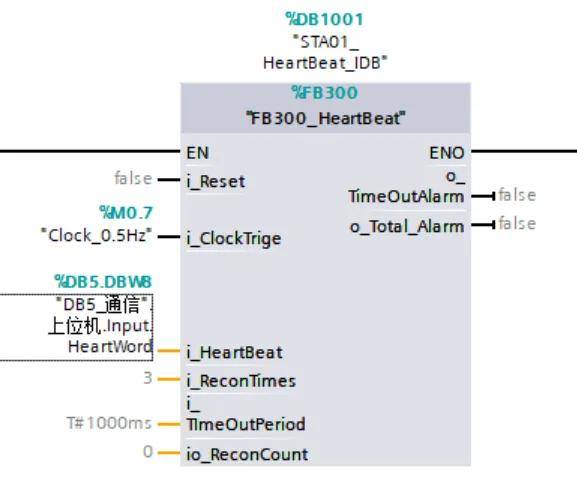 根据时钟脉冲信号上升沿切换记录当前心跳值(读取通讯对象地址或者提供地址给通讯对象写), 如果两次记录值相等则表示通讯已断开,反之表示通讯正常;