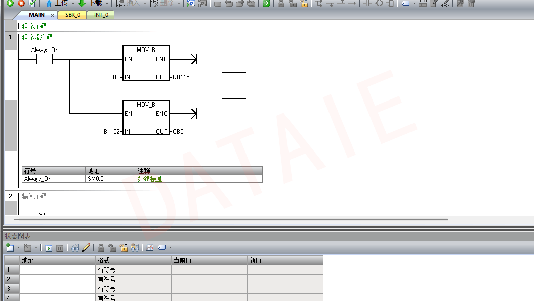 2台PLC分别通过以太网线连接达泰DTD418MB无线通讯终端,将天线接好以后,给DTD418MB和PLC供电,我们可以给1号PLC的I点输入信号,我们会发现对应的2号PLC的Q点就有输出信号。同样的操作我们可以给2号PLC的I点输入信号,我们会发现对应的1号PLC的Q点就有输出信号。2台PLC之间是通过达泰DTD418MB无线传输完成数据交互。