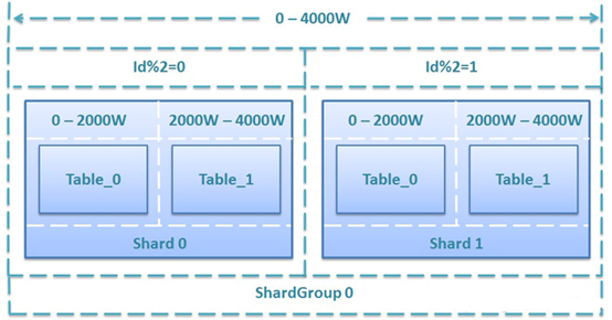 当代互联网项目的数据都是海量的,当数据达到一定水平时,无法通过单个数据库服务器来实现,然后就出现了垂直分区(分库),根据业务不同对数据进行拆散,存储到不同的数据库中。但当数据继续增加时,单个数据库任然会因为数据量过大而导致性能下降,这时就可以采用水平分区(分表),将一个业务表拆成多个子表,比如user_table0、user_table1、user_table2,用N张表来维护同一个业务的数据。子表之间通过某种契约关联在一起,每一张子表均按段位进行数据存储,比如user_table0存储1-10000的数据,而user_table1存储10001-20000的数据,最后user_table3存储20001-30000的数据。经过水平分区设置后的业务表,必然能够将原本一张表维护的海量数据分配给N个子表进行存储和维护,这样的设计在国内一流的互联网企业比较常见,如下图