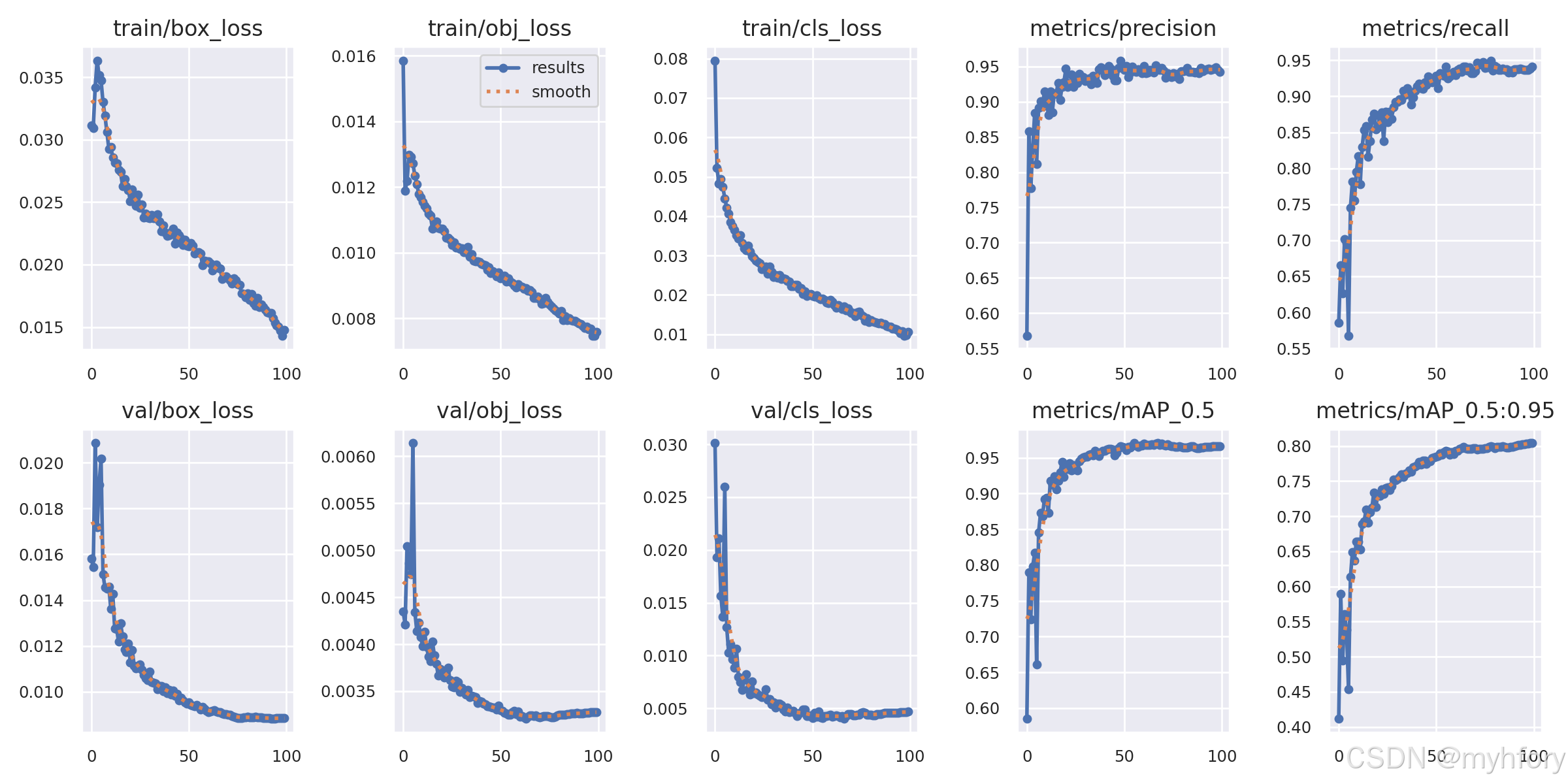 结果文件夹下还有很多评价模型优度的文件,如混淆矩阵confusion_matrix,F1_curve,P_curve,R_curve,在训练集和验证集上的召回率、准确率和损失率等,以及对数据的分析信息