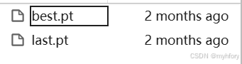 在训练结果文件夹下会有/weight文件夹,里面存放着训练最好的模型与最后一轮训练的模型,一般使用best.pt。