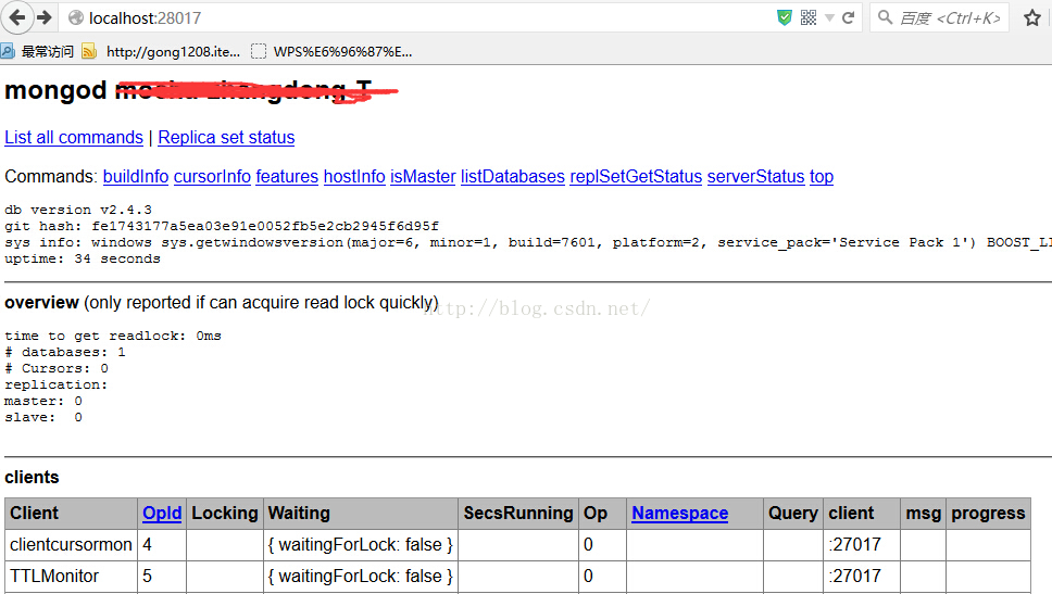 第一行为当前MongoDB的版本,同时,我们也可以看出MongoDB的默认服务端口为27017。