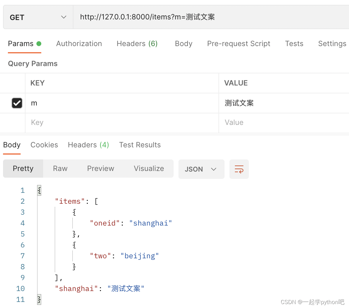 results = {"items": [{"oneid": "shanghai"}, {"two": "beijing"}]}