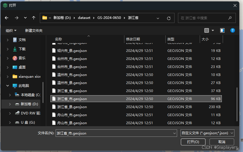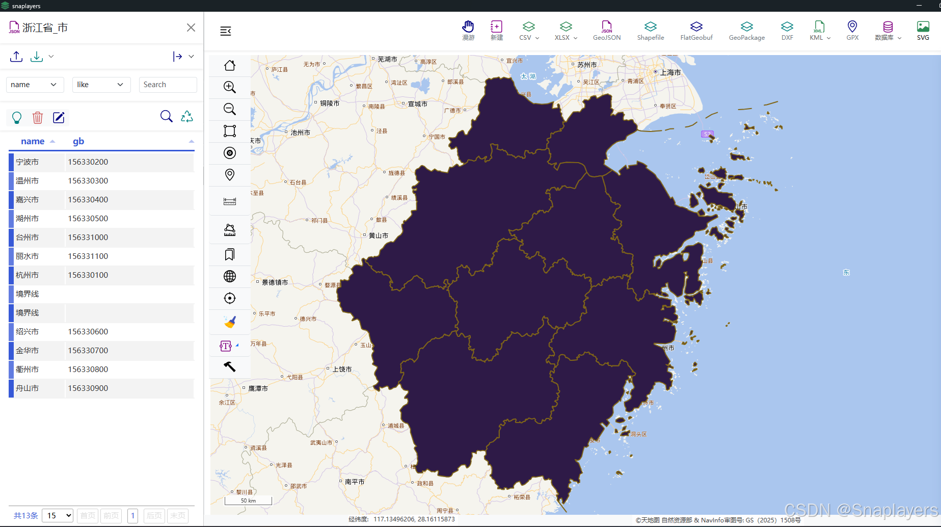 Snaplayers加载GeoJSON数据格式 1、加载GeoJSON数据格式操作 2、在打开对话框中选择GeoJSON数据文件 4、加载GeoJSON数据格式操作结果 可以看到,左边是图层的属性数据表格,中间就是点图层,表示加载成功。 Snaplayers研发团队承诺:国产轻量级桌面GIS软件Snaplayers永久免费并持续更新