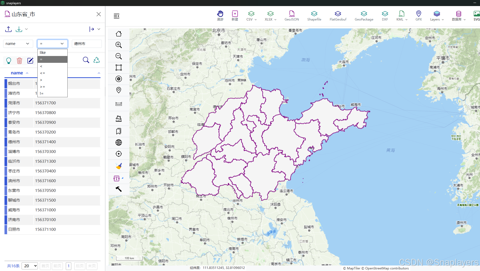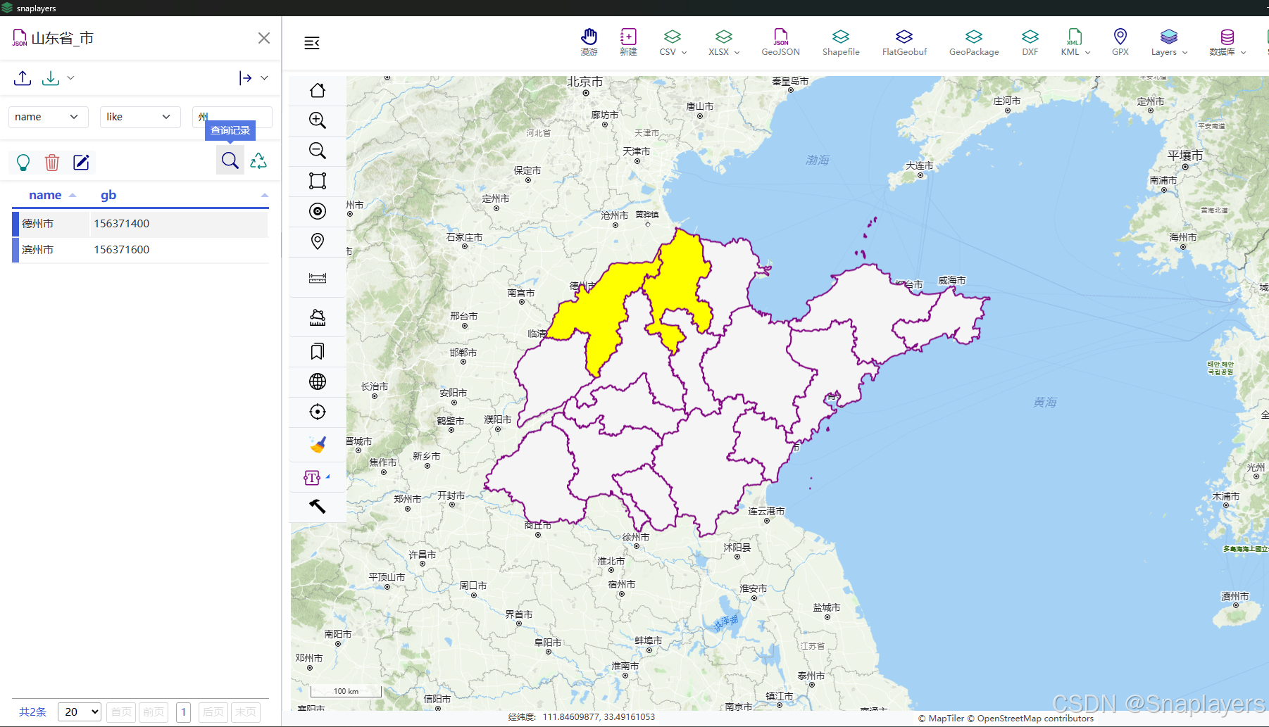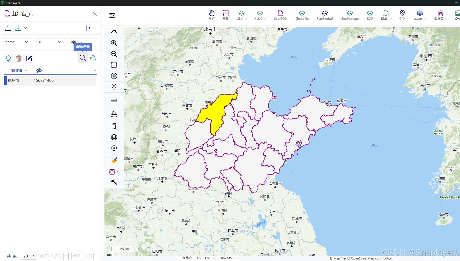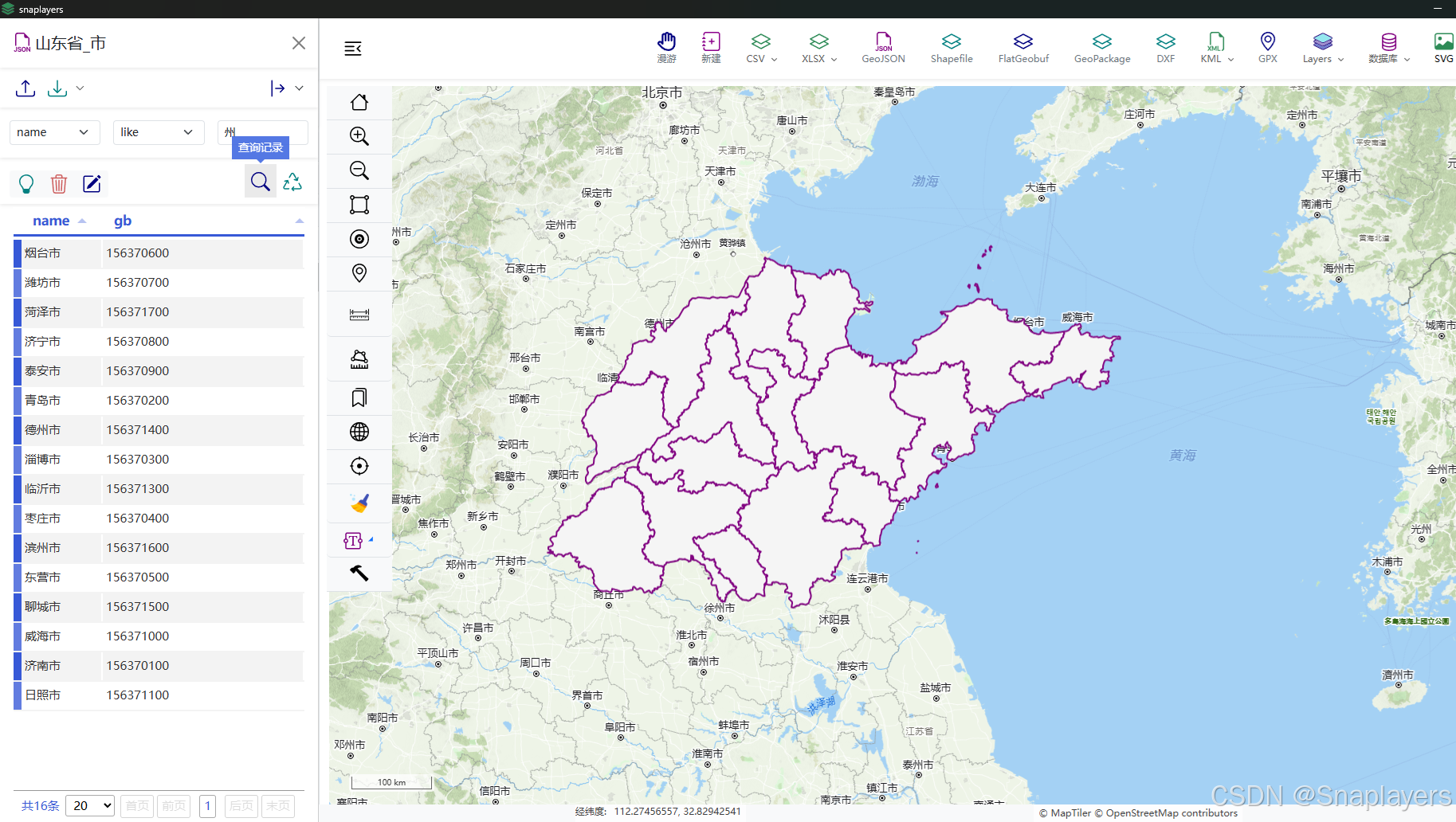 国产轻量级桌面GIS软件Snaplayers功能:图层属性表及其查询