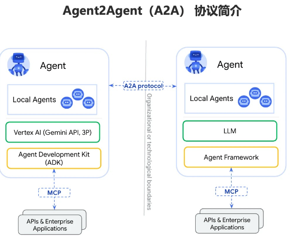 A2A 是由 Google 推出的开源协议,旨在实现不透明 Agent 智能体应用程序之间的通信和互操作性。该协议使 Agent 智能体能够完成任务,而无需共享内存、想法或工具,相反,它们交换上下文、状态、指令和各自原生模态的数据