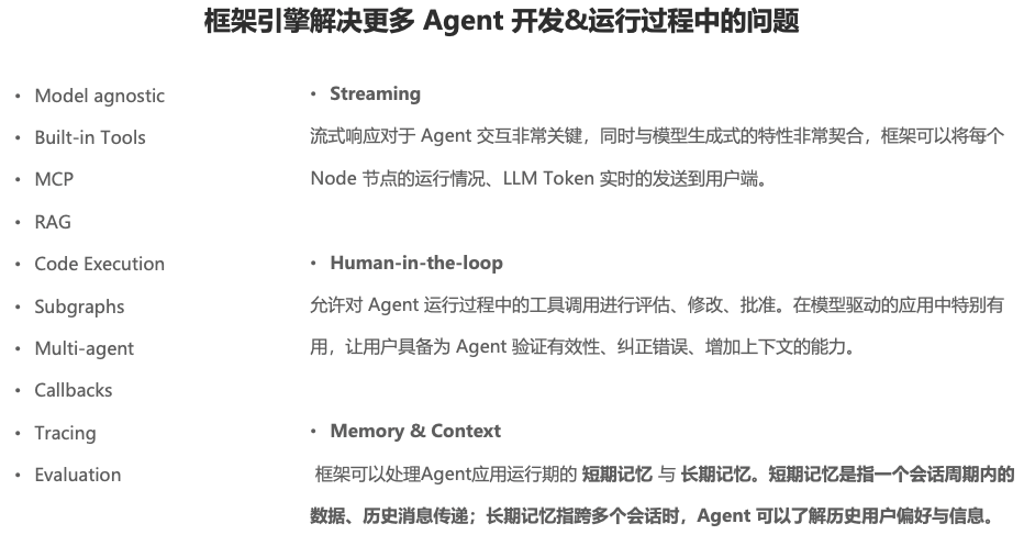 | 核心特性 | 推理、生成、工具使用 | 控制多个智能体流程 | 控制多个智能体流程 |