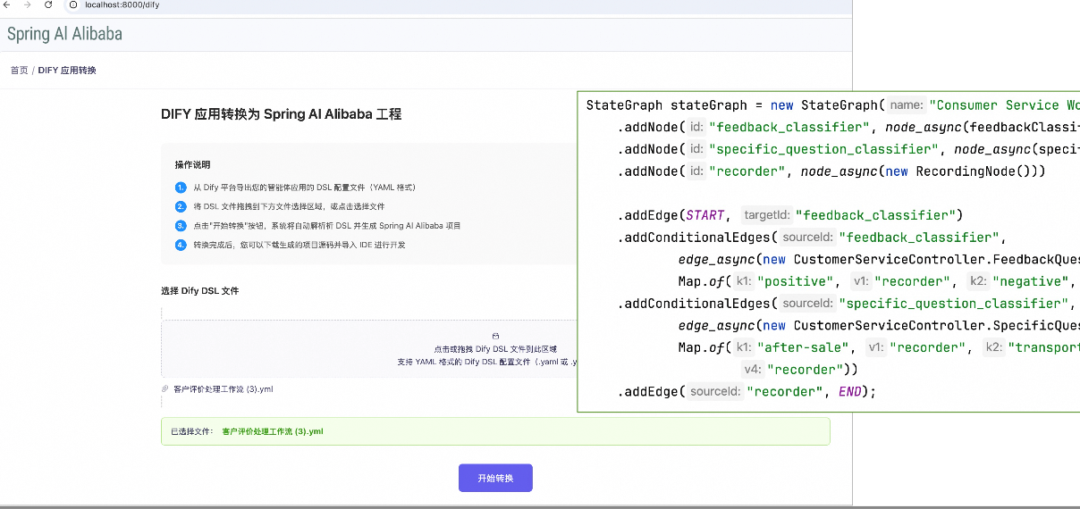 提供了从 Dify 转化到 Spring AI Alibaba 工程的脚手架