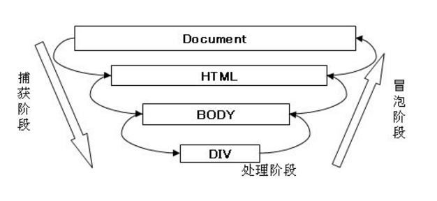 - 事件处理:当到达目标元素之后,执行目标元素绑定的处理函数。如果没有绑定监听函数,则不做任何处理。