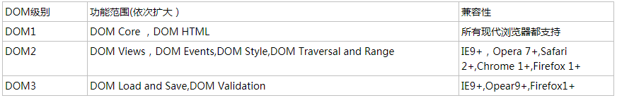 浏览器对不同级别DOM的支持情况如下所示: