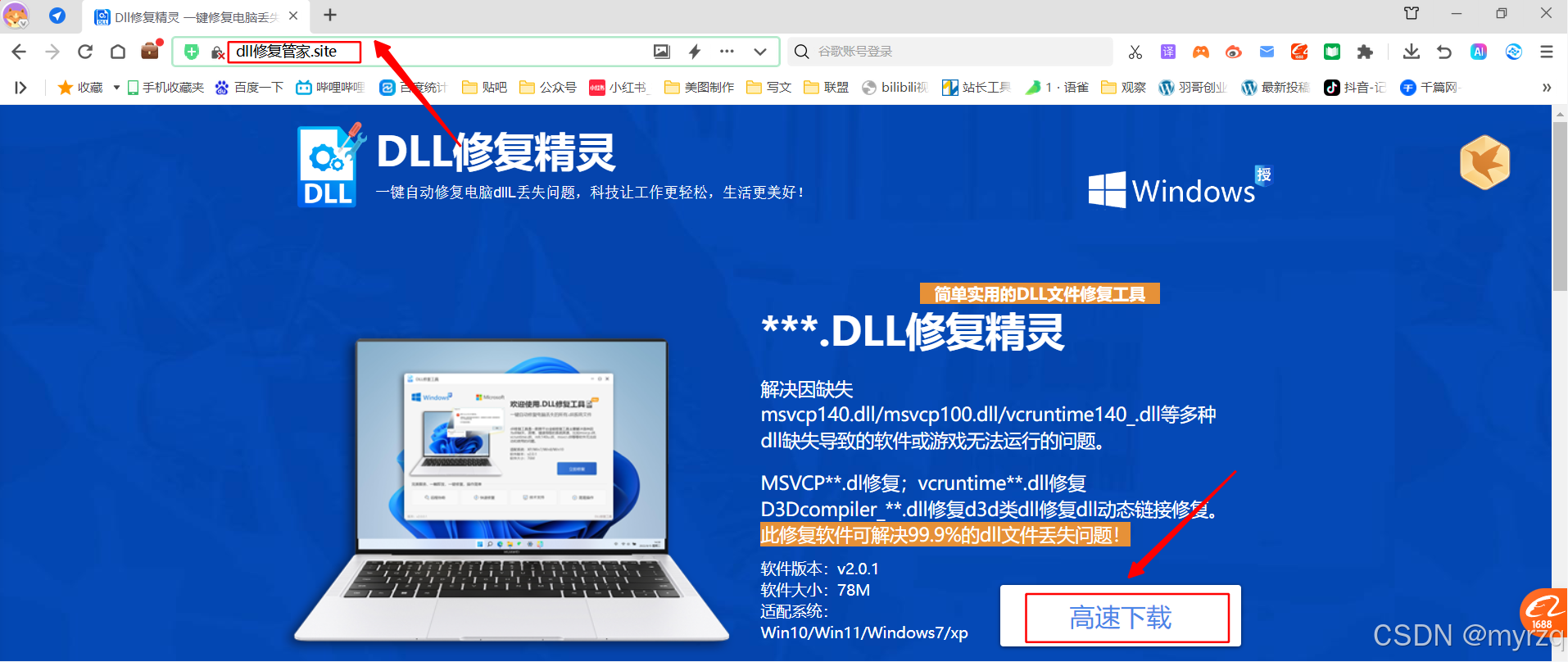 在任意的浏览器顶部上车俞入:dll修复管家.site 然后按确认Enter键就可以了