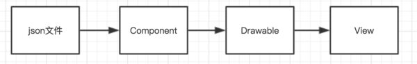 现在思考如果我们拿到一份json格式动画如何展示到屏幕上:首先要解析json,建立数据到对象的映射(LottieComposition),然后根据数据对象创建合适的 Drawable (LottieDrawable)并绘制到 View (LottieAnimationView)上,动画的实现可以通过操作读取到的元素完成,如下图所示:
