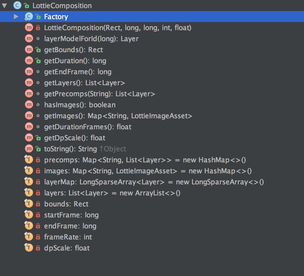 通过 compostion 创建了一个 Layer 对象,并将自身、 compostion 对象中的 layers 属性及 composition 对象作为参数初始化了一个 CompositionLayer 对象: