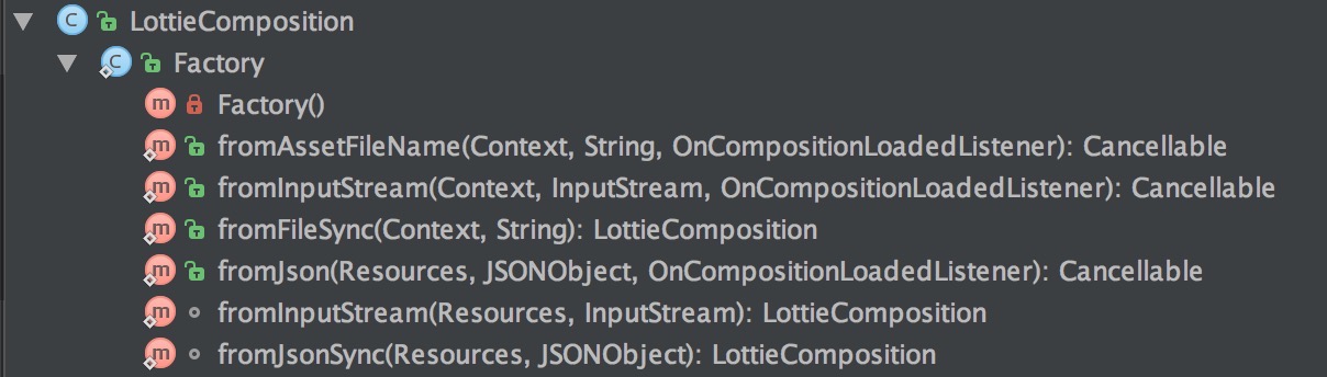 Cancellable compositionCancellable = LottieComposition.Factory.fromJson(getResources(), jsonObject,