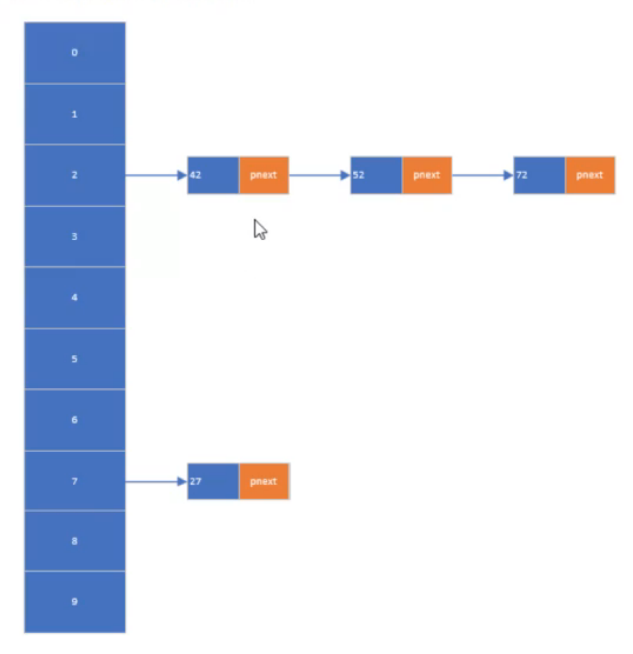 哈希表本质上是一个 linknode* 数组,每个元素指向一个链表的头结点