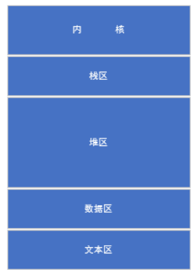 用户空间:文本段(文本区)+ 数据段(数据区)+ 系统数据段(堆区、栈区)