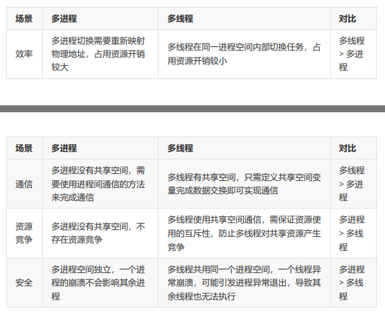 - 一个进程中的多个线程切换调度任务时,资源开销比较小