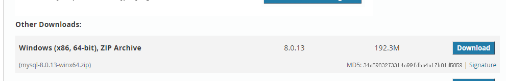 这是我下载的windows(x86 64位)的MySQL8.0.13的zip包。下载完毕以后,解压到你想要安装的位置,我放到了这个位置:D:\MyPrograms\mysql-8.0.13-winx64