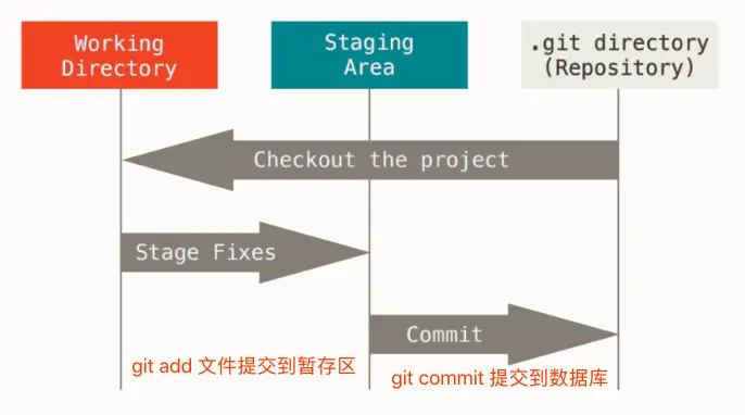 我们在使用Git的时候一般有3个工作区的概念:Git 仓库、工作目录以及暂存区域。其中工作目录比较好理解,就是我们开发时修改文件的那些目录,Git 仓库就是我们项目目录下面的 .git目录中的内容,而暂存区域是保存已经被Git标记过,将要提交保存到Git数据库中的文件的地方