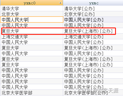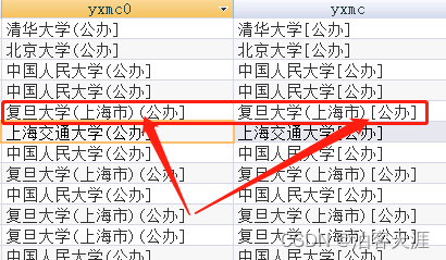 我需要把两个表中的校名对应,但是第一个表格中有[公办]、[民办]或(北京市)、(天津市)等,比较麻烦,我要把字段中所有带中括号和小括号的内容去掉,一般数据库去括号用以下语句可以完成