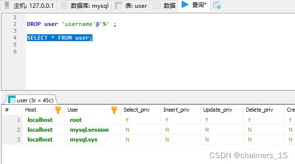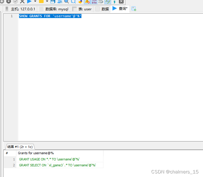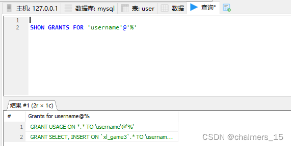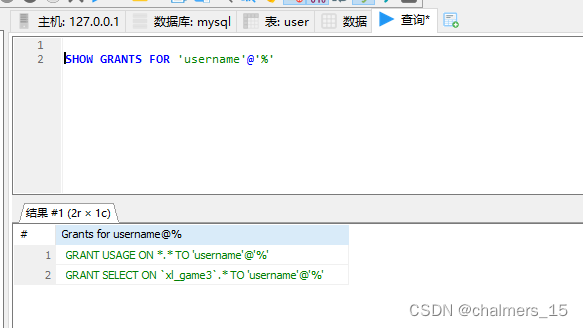 再次查询 SHOW GRANTS FOR 'username'@'%'