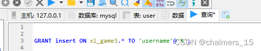 GRANT insert ON xl_game3.* TO 'username'@'%';