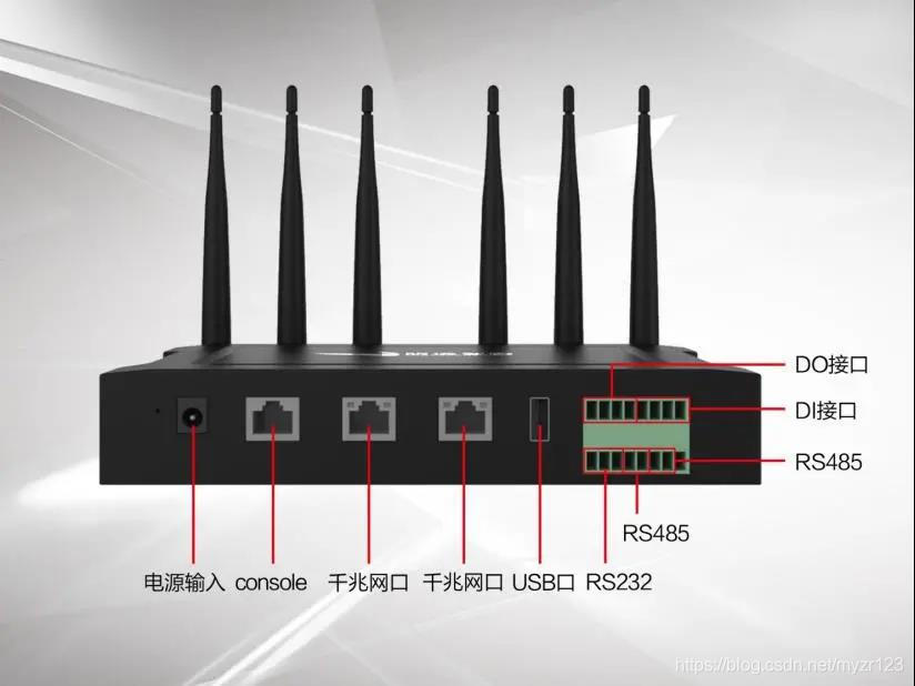 而工业5G路由器则在接口上少了许多。