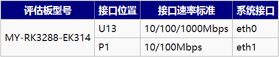 MY-RK3288-EK314 评估板支持双网口,一个百兆,另一个千兆。