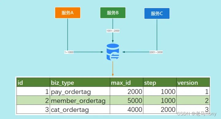 从上图可以看出,由于使用的是数据库的集群架构,客户端一般都是通过代理来访问 DB,这时候代理就需要有负载均衡的能力:需要依次轮询访问每一个 DB 节点,通过步长生成下一个分布式 ID 返回。
