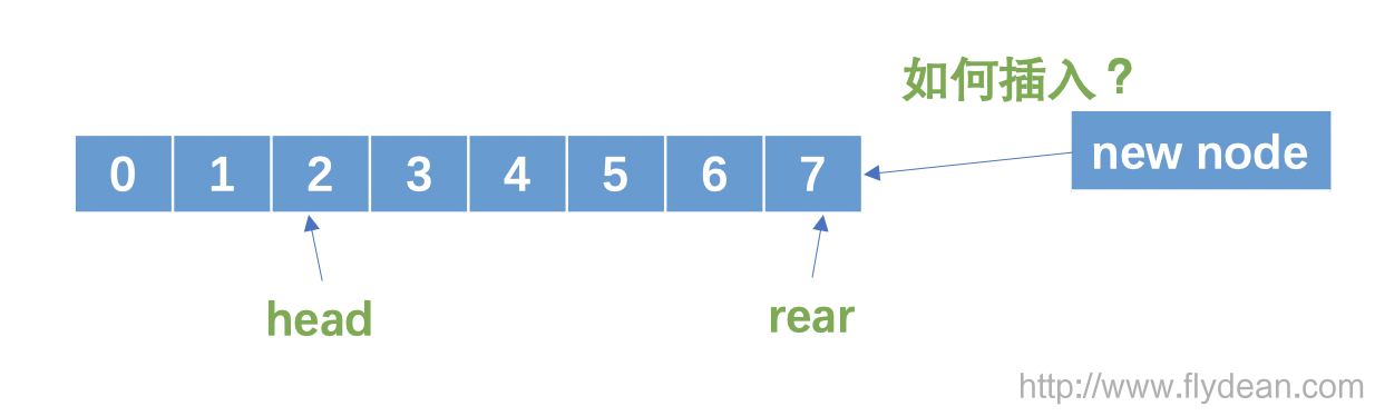 上面图中,head的index已经是2了,rear已经到了数组的最后面,再往数组里面插数据应该怎么插入呢?
