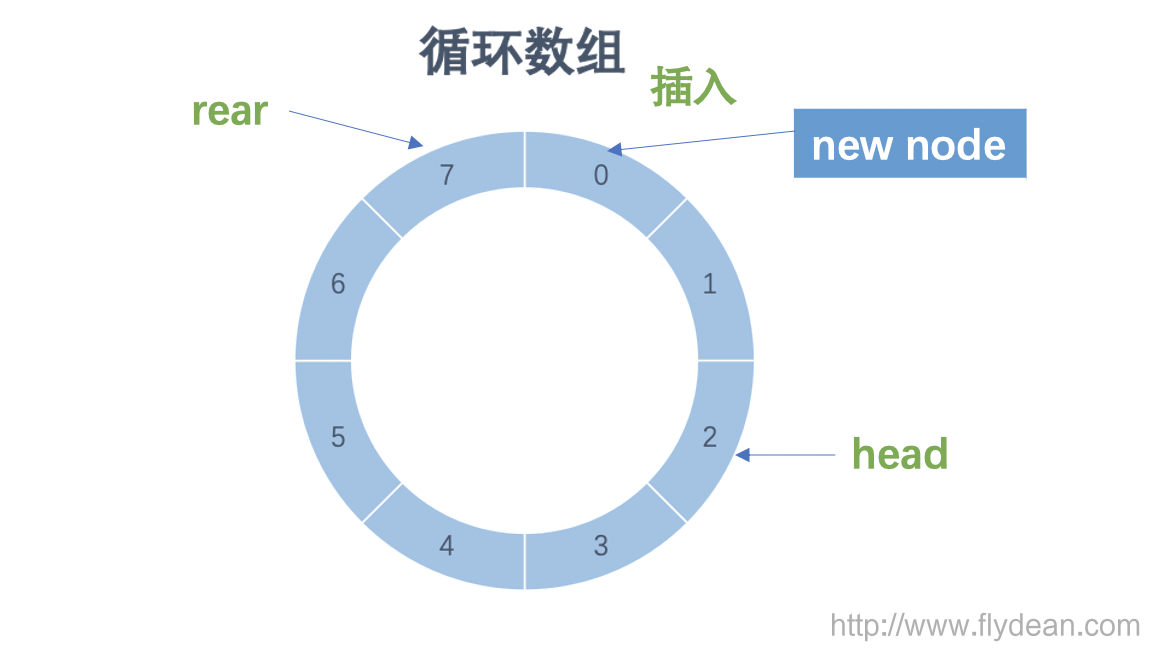 如果再往rear后面插入数据,head前面的两个空间就浪费了。这时候需要我们使用循环数组。