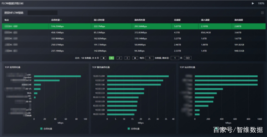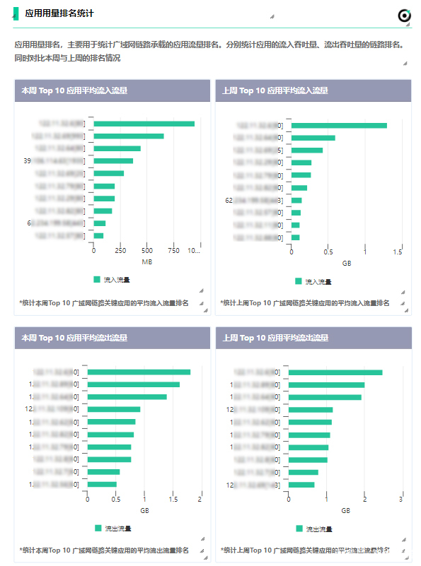链路承载的应用流量排名统计,可以查看哪些业务占用流量过大