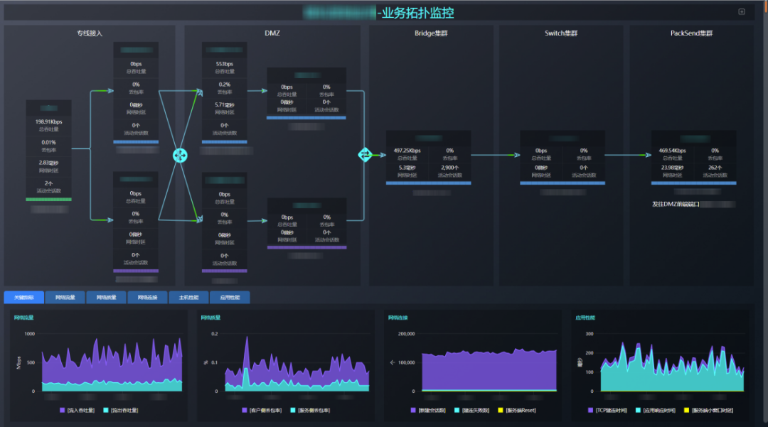 一卡通的B端业务都是通过点对点的专线连接,运维人员能通过流量监控平台自主查看网络层的线路质量,也能监控到应用层的响应情况,有无异常延时等。例如曾有客户反馈在网点做业务超时、异常,我们通过监控查看线路容量、带宽使用率、业务占比、线路质量管理、丢包、时延等均在正常范围,虽然业务质量监控业务带宽占比正常,但是业务质量指标却异常,因此很快与应用部门确认问题所在,并予以解决。