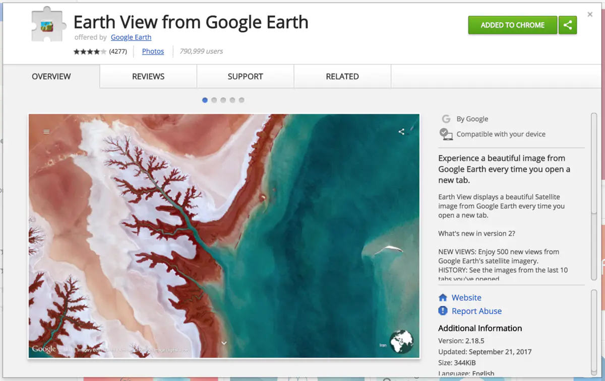 Earth View from Google Earth是一款Chrome插件,会在打开新标签页时自动加载一张来自Google Earth的背景图片。