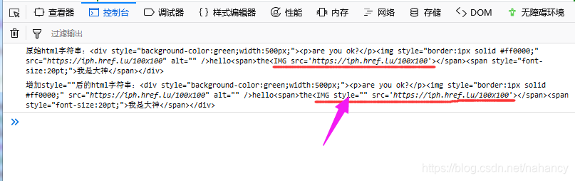 console.log("增加style=\"\"后的html字符串:"+htmlstr);
