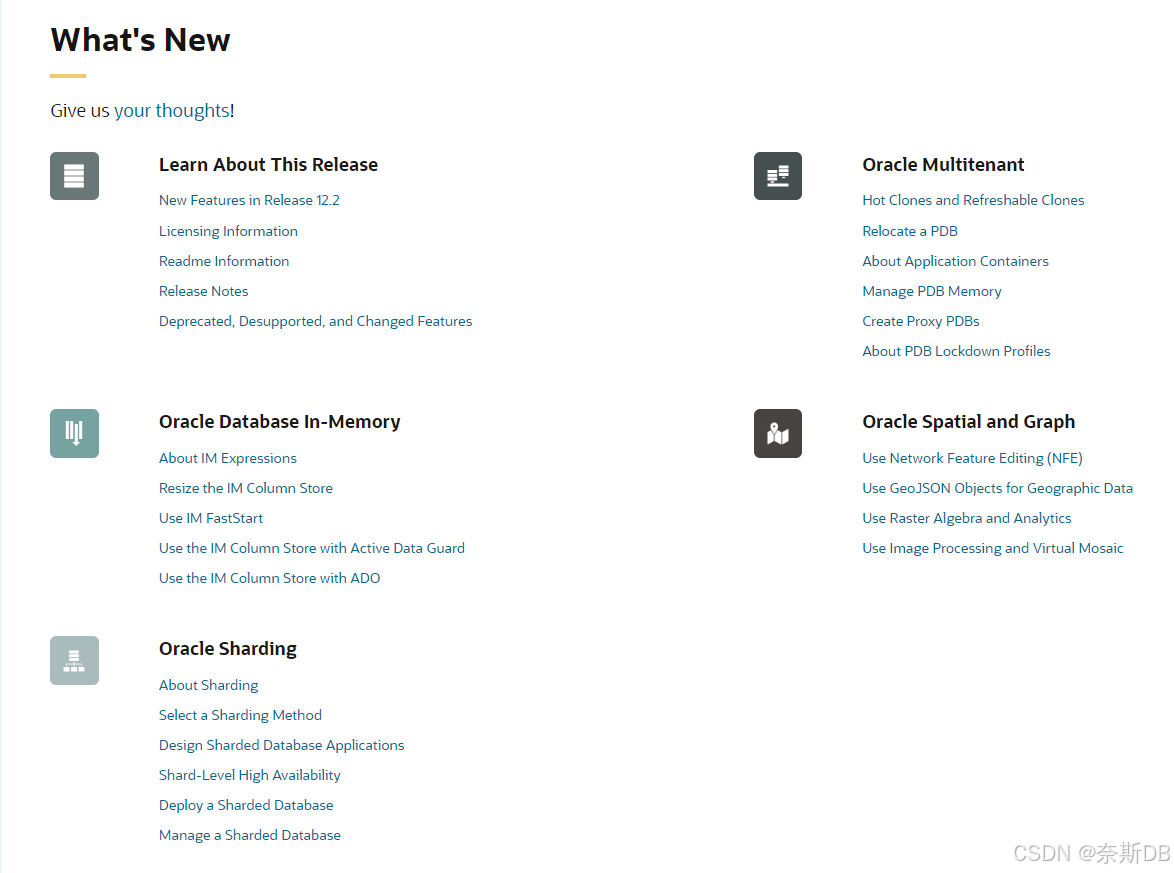 What’s New in Release 12.2:12.2版本的新特性(如多租户、JSON支持等)。