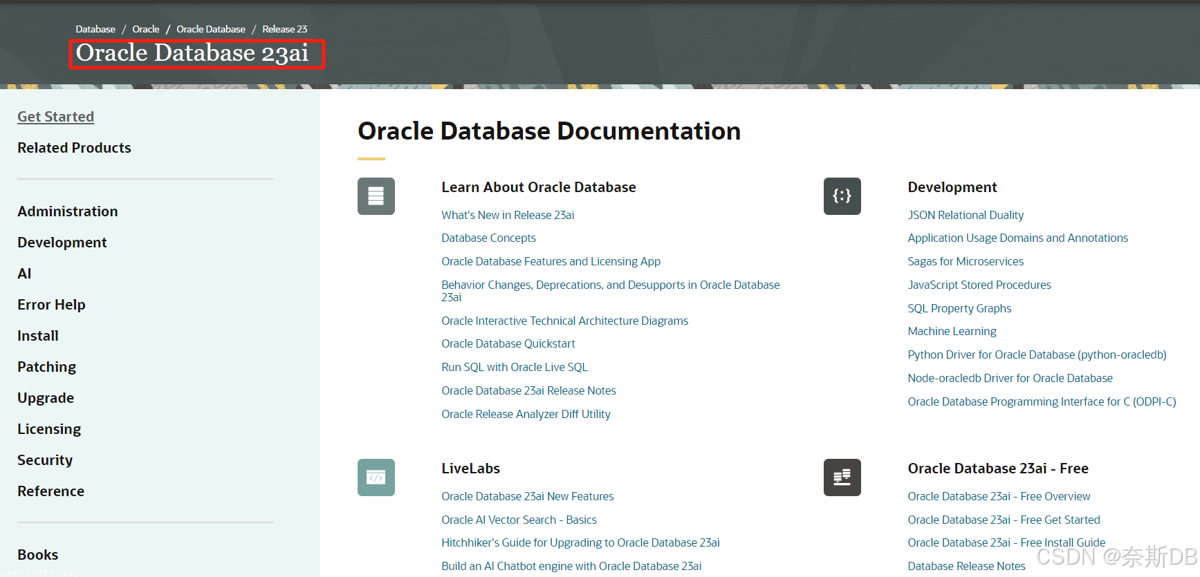 这里并没有根据“Oracle Database Videos”的字面意思进行跳转,而是进入到最新的数据库版本23ai主页。。。。